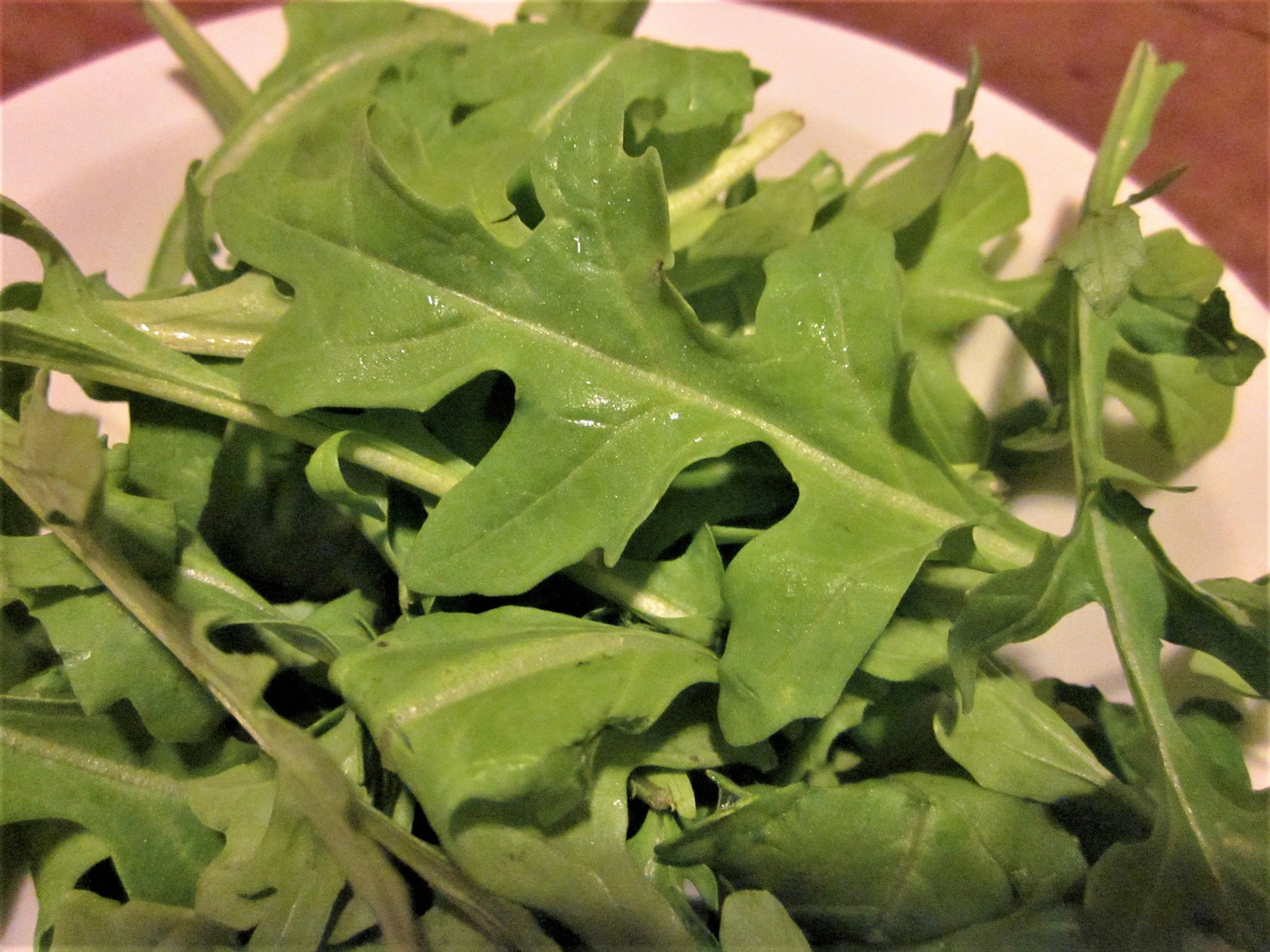 Eruca vesicaris. Traditional, spicy salad green provides that bitter component that stimulates digestion. Leaves are long and dark green and deeply cut. Very productive plants can be used for cut-and-come-again harvests.