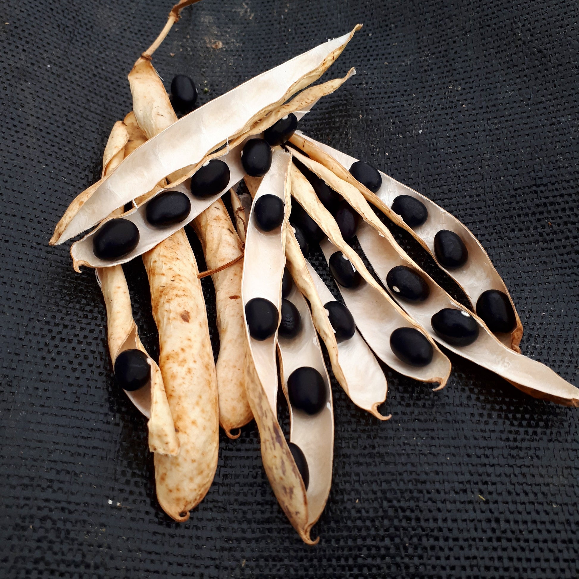 Very early, very productive dry bean. Black Coco has a robust flavour and plump, black beans that cook down to a dark chocolate-brown colour. One of our favourite soup beans and no slouch in the refried bean department. Compact plants germinate well in cool soil and produce heavy yields of pods bearing 5-6 beans. Eat as a snap bean when young or allow pods to dry on the plant then shell out to eat right away or store for winter use.