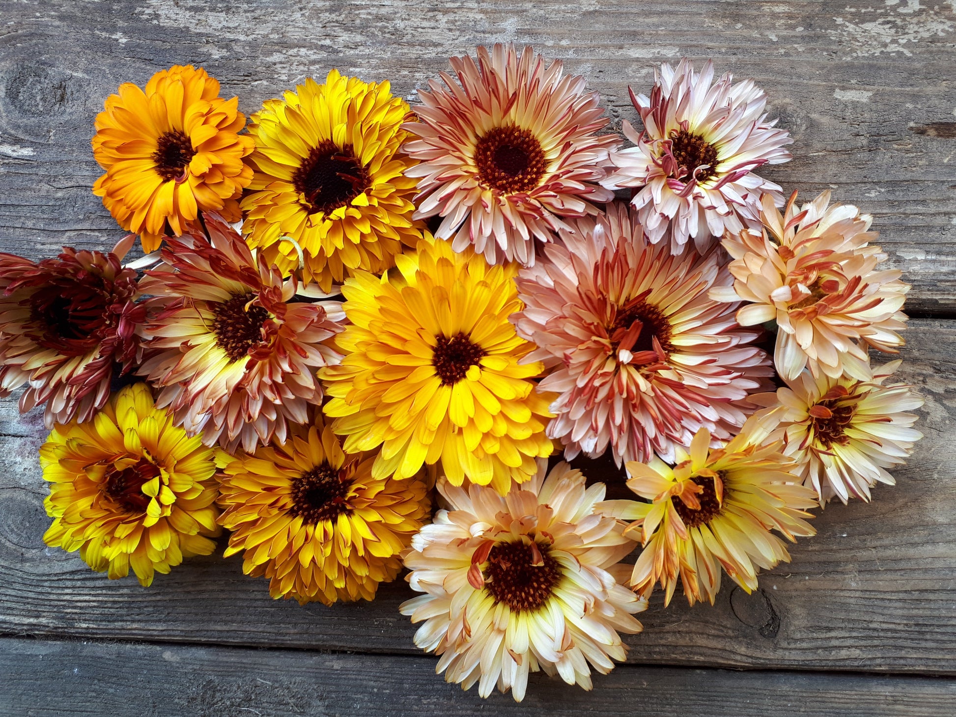 Wow what a riot of colour. Flowers are orange, apricot, peachy, vanilla or yellow with flashy red or maroon backs. There is a high percentage of bicolours and double and semi-double blooms. Great for cutting and edible too. As the flowers fold up for the night, they reveal their flashy backsides, hence the name. This is a real show stopper in the garden. It is early to bloom and produces another flush of heavy bloom in the fall till frost comes.