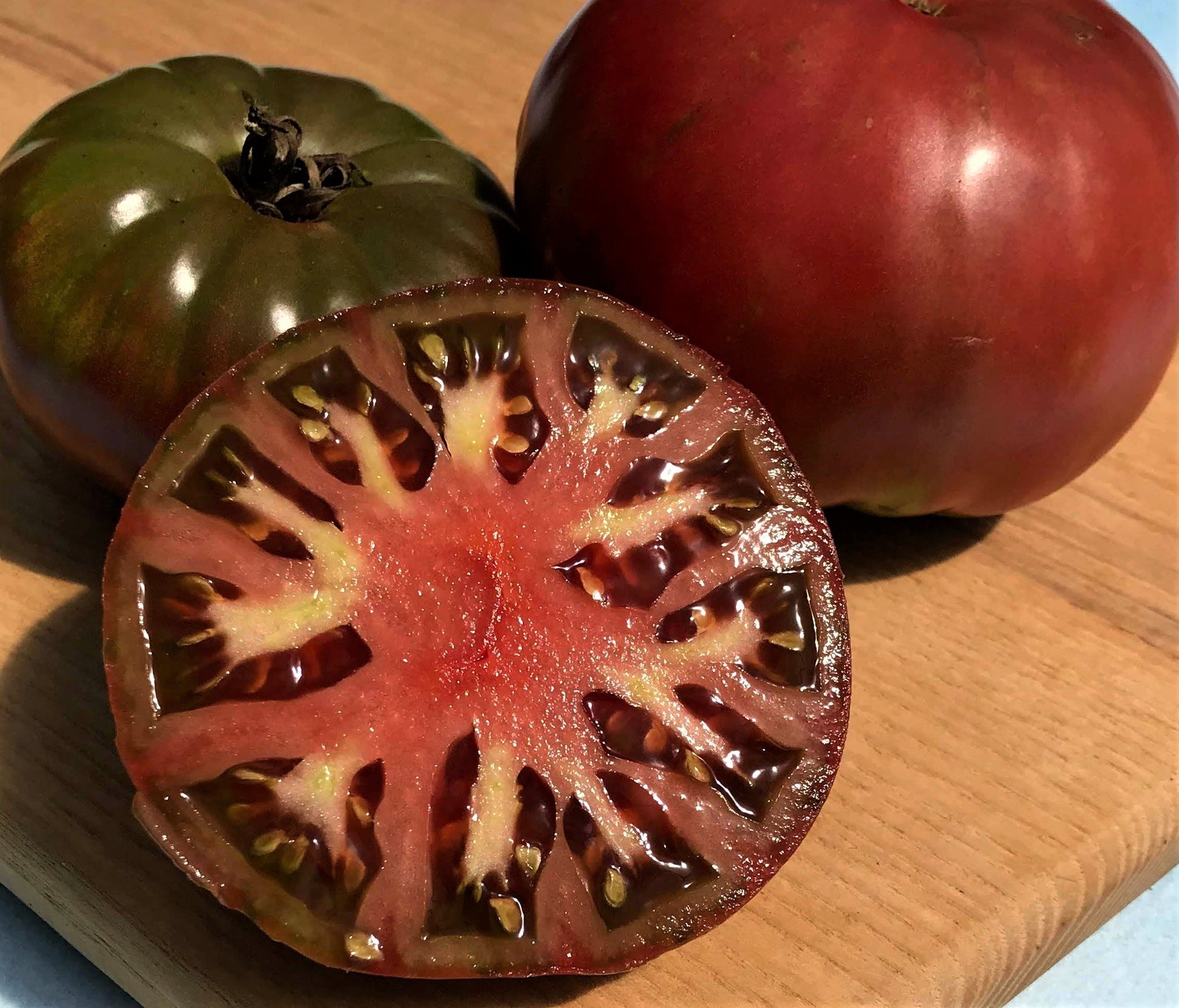 A contender for one of the tastiest tomatoes. These large, dusky-pink tomatoes have a complex sweet, smoky taste. They are said to have been grown by the Cherokee people of the USA and rediscovered by Craig LeHoullier, then released in 1993 in partnership with Southern Exposure Seeds Exchange. This is not a tomato to grow for bushels and bushels of fruit but one to have on hand for the incredible taste. For best taste, pick when slightly underripe, shoulders will still be green. Can get mushy if left to ripen too long. This tomato is on the US Slow Food Ark of Taste. Indeterminate.