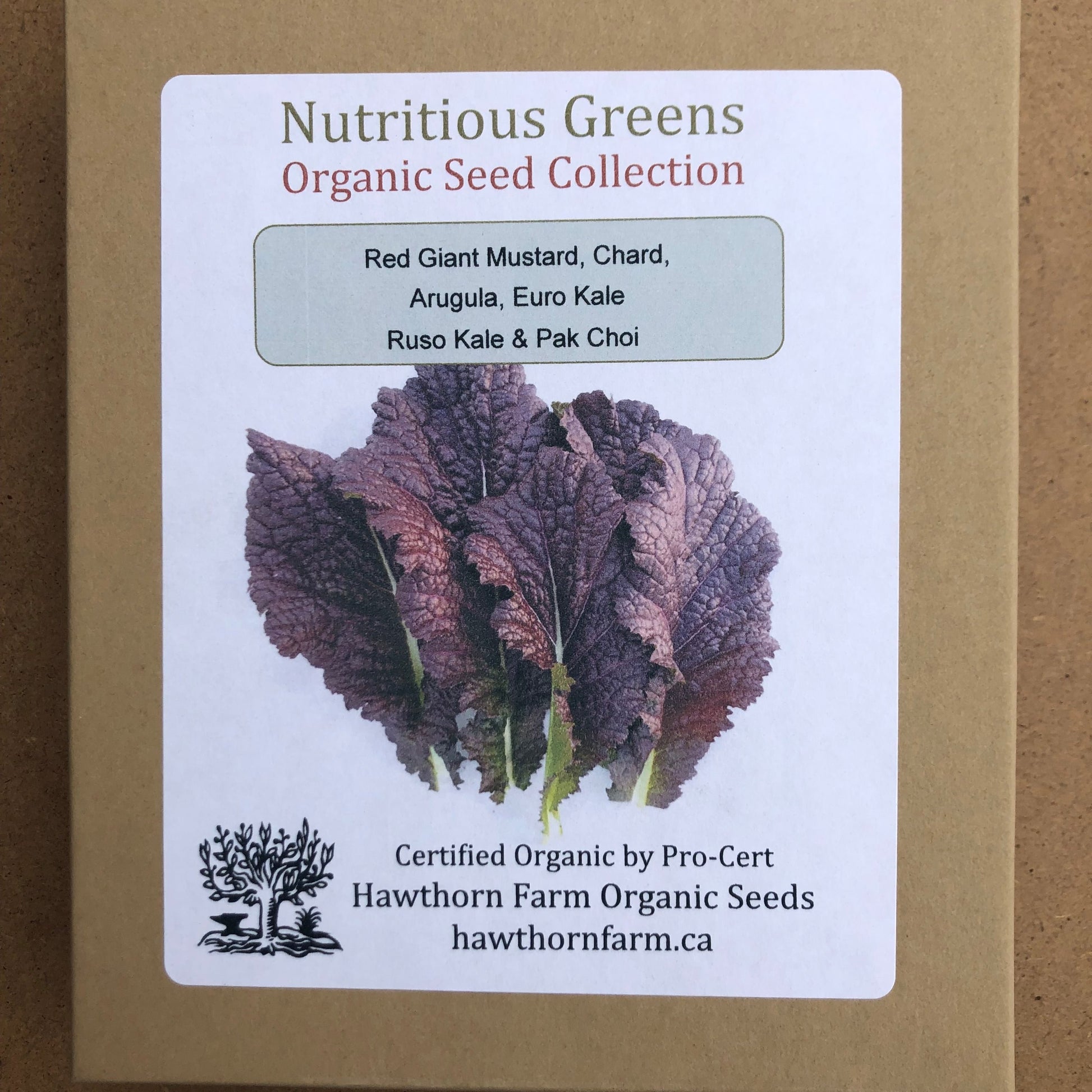 Contains one packet each of Red Giant Mustard, Euro Kale, Arugula, Chard, Ruso Kale & Pak Choi