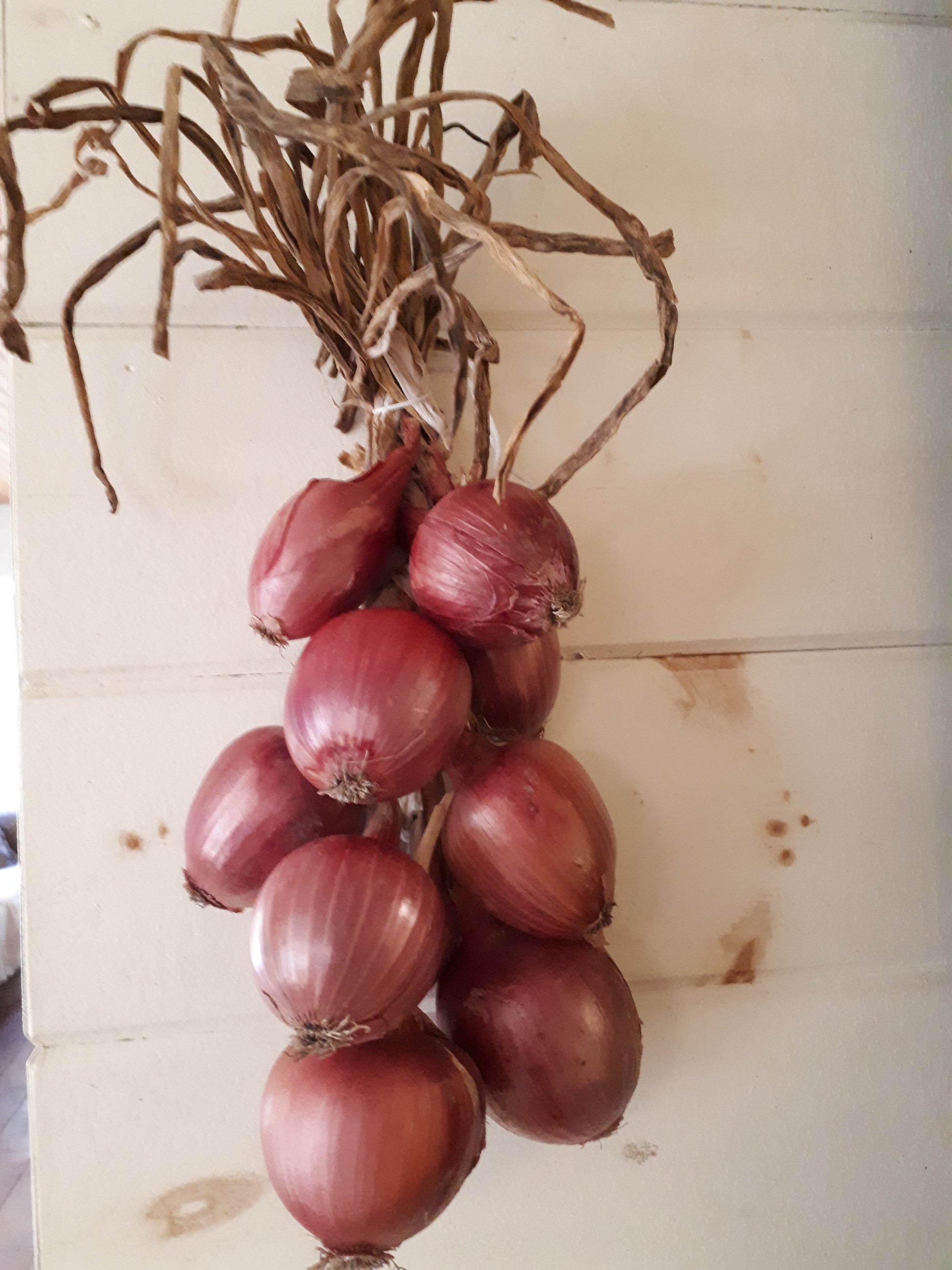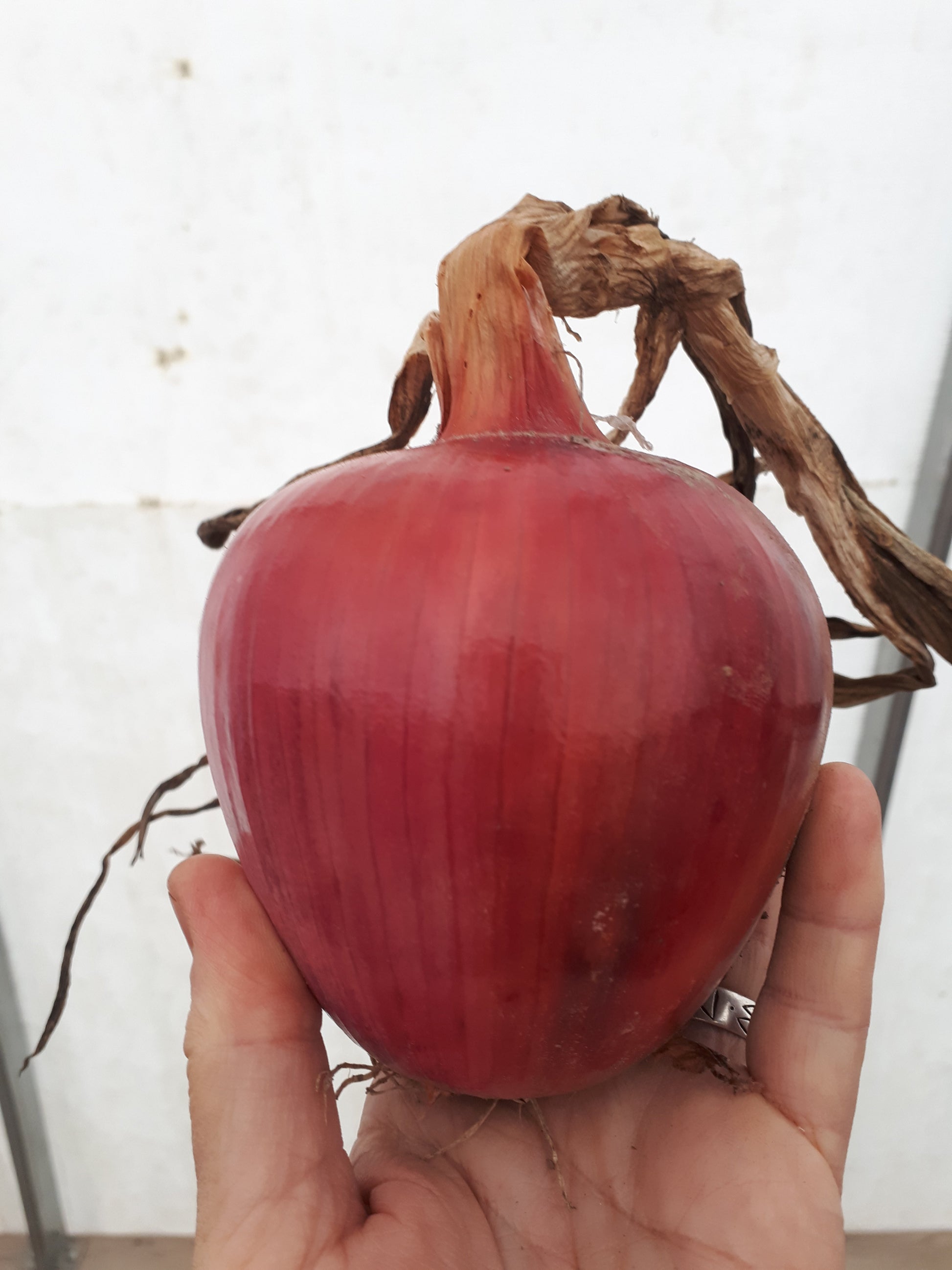 Rare Italian heirloom is exceptionally beautiful especially when braided into ropes and hung in the kitchen for winter use. Large (10-15 cm) barrel shaped onions are a bright rosy red colour and have a sweet, pungent taste and firm texture. Flat on top tapering to a narrow rounded bottom. Great storage onion that can last for 6 months or more.