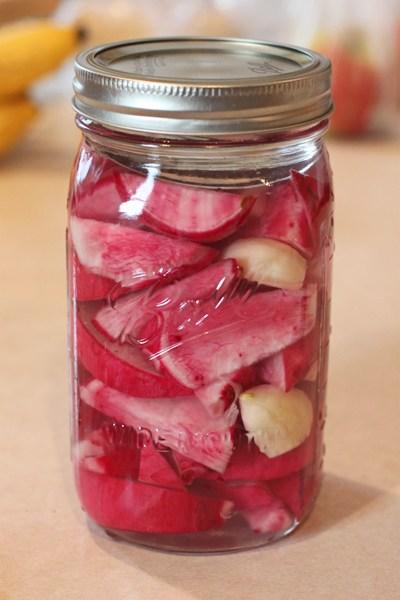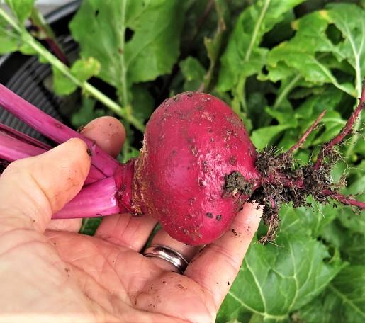 Round to slightly flattened 5cm roots are brilliant magenta on the outside and white with pink streaks on the inside. These beautiful little turnips are mild, tasty and very cruchy. They make magnificent pickles and are delicious braised. And there’s more. The leaves are smooth and hairless and cook up into a delicious mess of greens when tossed with olive oil and garlic. This is another genius offering from Frank Morton of Wild Garden Seeds. Frank says that there are still a few brilliant purple monsters in the mix for those of you who like surprises. Who know turnips could be so versatile.