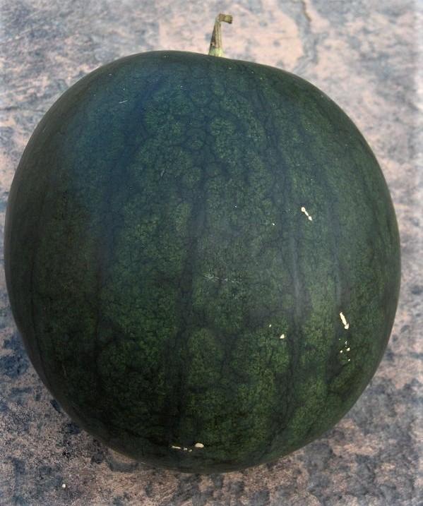 The standard of icebox watermelons. These little watermelons ripen even in our zone 5 garden. Crisp red-orange flesh is sweet and juicy with dark brown seeds. Round 3.5-5.5 kg fruits have a thin, tough rind that resists cracking and turns dark green, almost black when ripe. Kids love them.