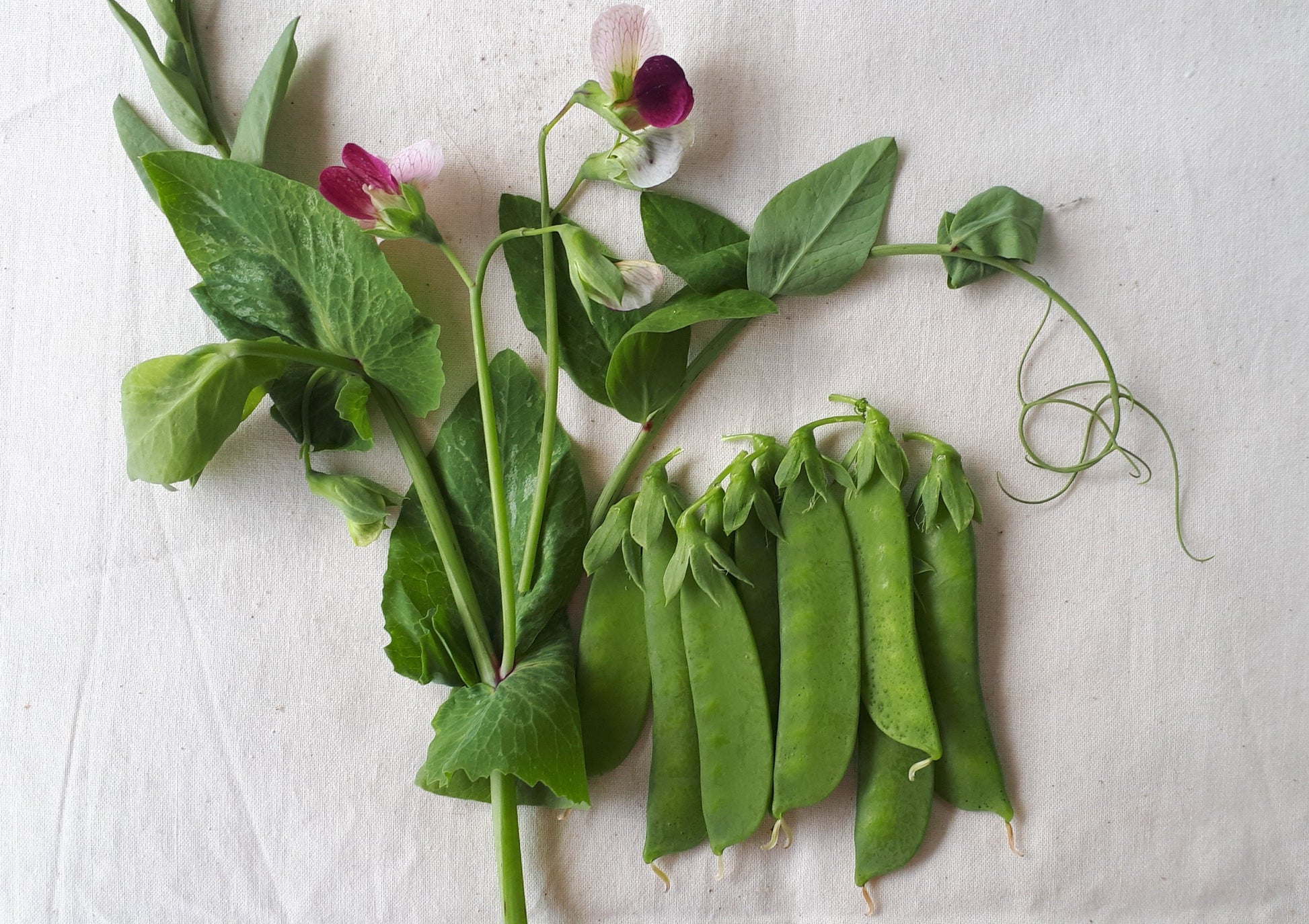 Early maturing heirloom snow pea is grown for pea shoots (32 days) and blossoms (39 days) as well as small crunchy pods. The pods reach about 6.5 cm. in length and are very sweet. Pea shoots and beautiful purple flowers add interest to salads and stir fries and make beautiful garnishes. Dwarf plants reach 45-50 cm and need no trellising.