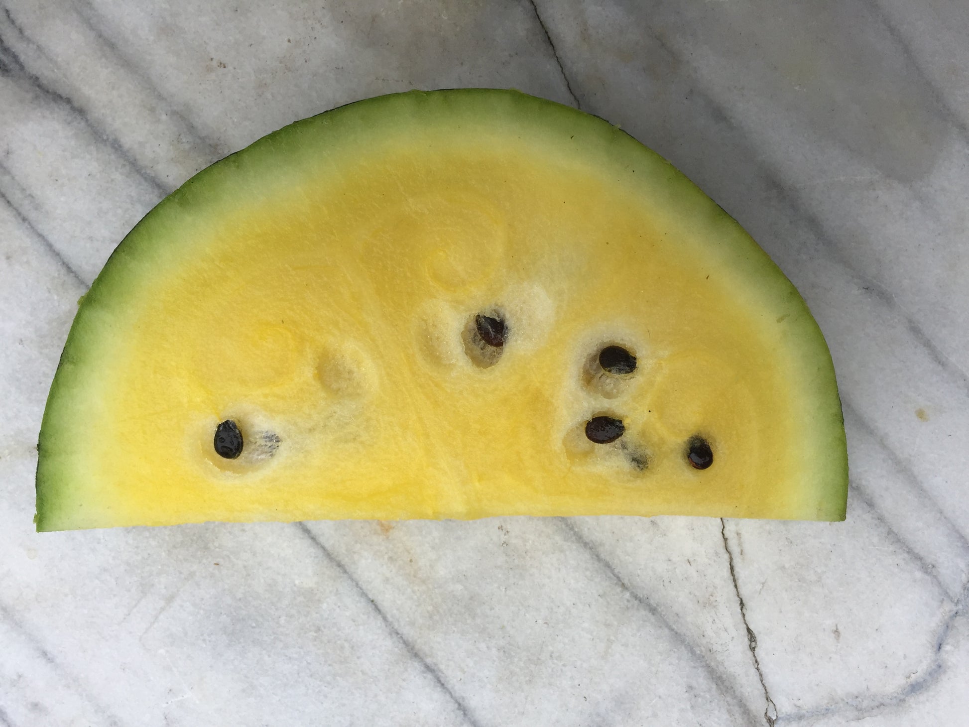 Crisp, scrumptious and early this open-pollinated selection out of the hybrid Yellow Doll by Dr. Alan Kapuler is bliss. Vigorous vines reveal dark and light green tiger striped skin stretched over 5-8 lb fruits. Everything a watermelon should be and abundantly productive in the garden. Reliable. Delicious.