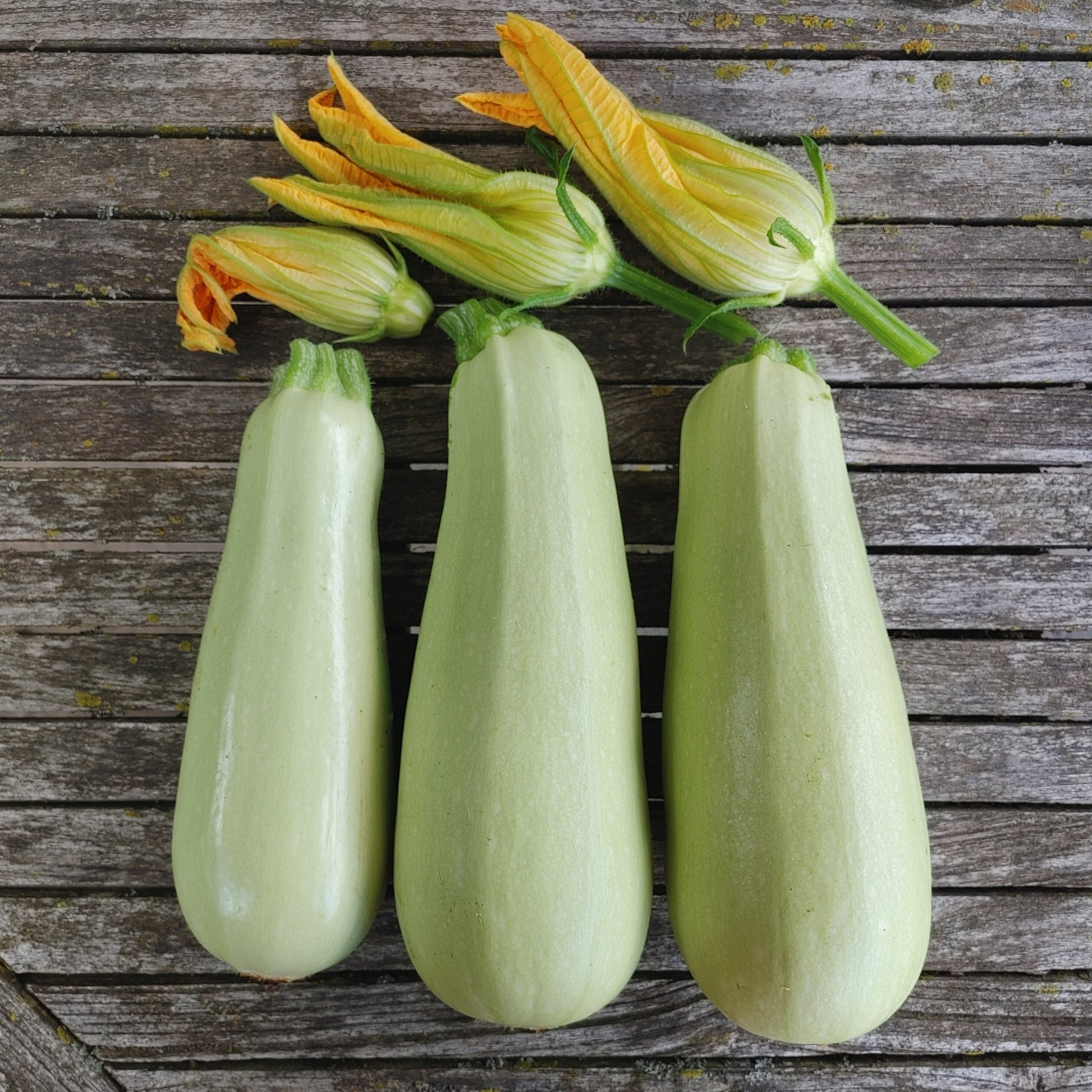 With a compact, bush habit this heirloom zucchini is a great choice for those with limited space. Pale green cylindrical fruits have a mild, sweet flavour. We like to eat them up to 20cm for the tenderest flesh. Great grilled on the BBQ, roasted or diced fresh into salads and grain bowls. Early and very productive. Pick often and the plant will keep on producing all summer long. Rare. 58 days