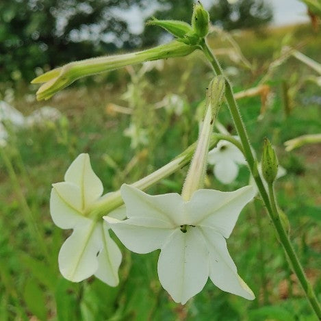 This old fashioned variety of Jasimine-scented tobacco is a knock-out in the garden. Tall plants are great as a focal point or massed at the back of the garden. They reach 1-1.5m and have large, tobacco like leaves topped with the sweetest smelling, glowing white flowers that open in the cool of late afternoon/early evening. Butterflies, hummingbirds and night-flying Hawk Moths are drawn to the nectar rich flowers. Plant near a bedroom window to enjoy the sweet scent as you fall asleep. A must grow for moon gardens.