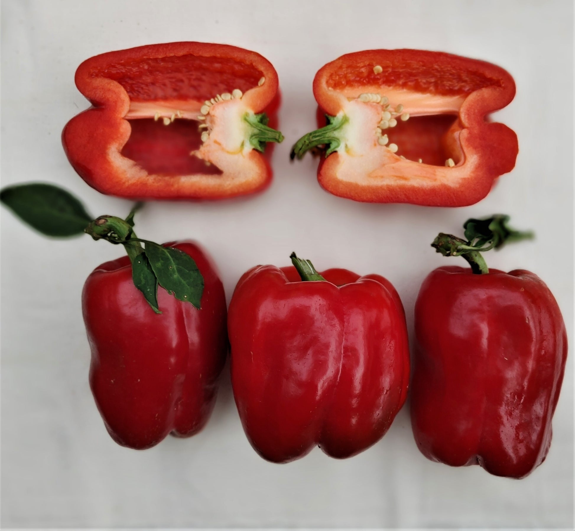 Super early red sweet bell pepper bred and selected cooperatively in and for organic growing systems on organic farms across Ontario. Taste tested at market against hybrid bell peppers this delicious pepper came out on top for flavour. The gene pool is diverse and occasionally a tasty, early yellow bell will appear. We are working on these yellow peppers with fellow breeders Annie Richard, Kathy Rothermel, Greta Kryger and Rebbeca Ivanoff in the hopes of releasing a tasty, early yellow bell in the near future. We are able to offer this amazing pepper due to the support of Cornell University's Michael Mazourek and the Ecological Farmers Association of Ontario’s Farmer-led Research Program. This is an OSSI pledged variety.