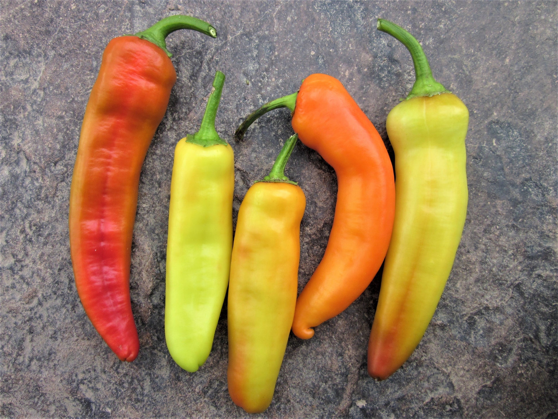 Long, tapered peppers start out yellow and mature to red. This is a great, all purpose pepper that can be eaten raw or cooked. Sweet, mild pepper flavour and a shape that looks beautiful in a jar of pickled peppers. The plants are very productive even in short season gardens.