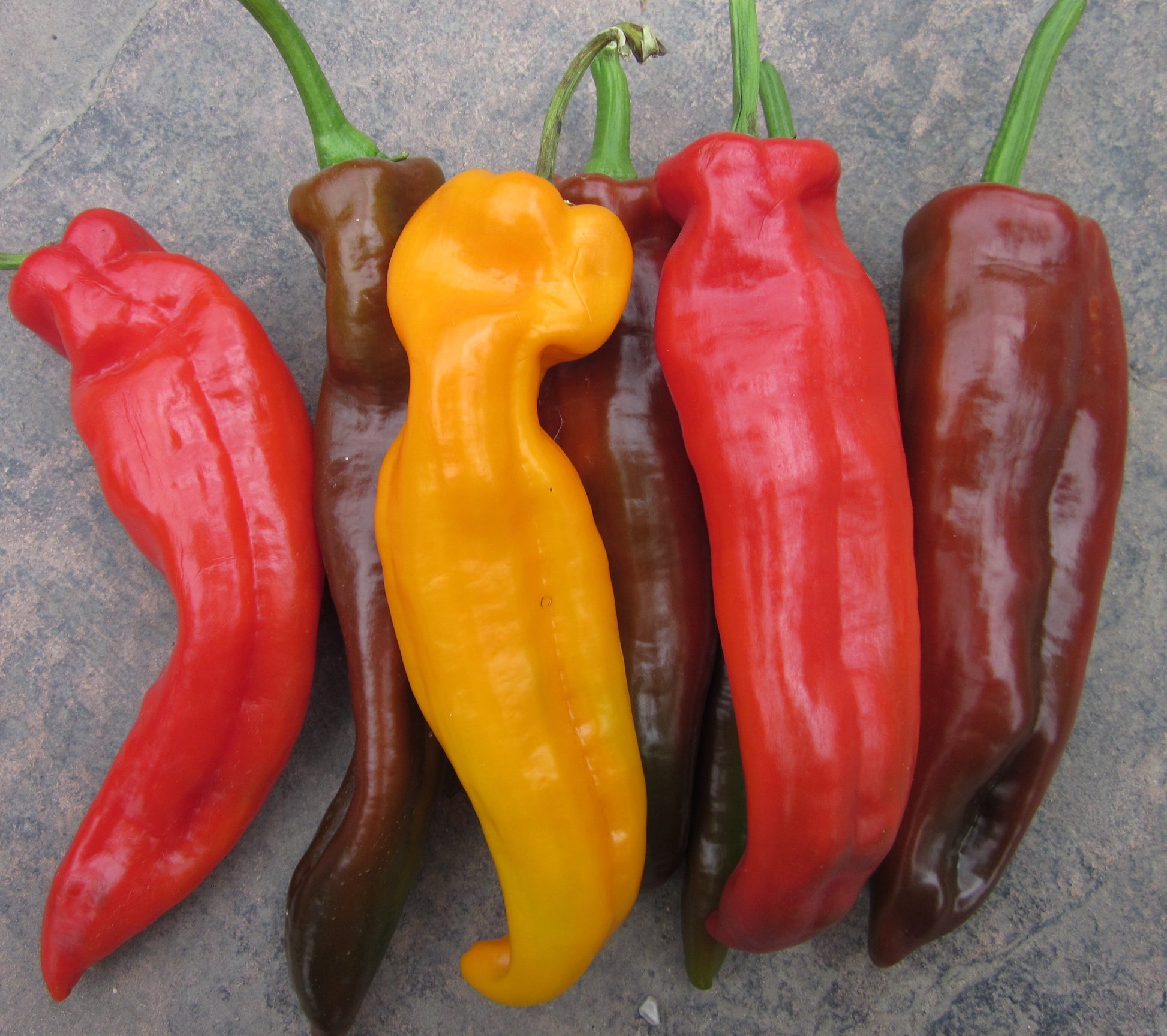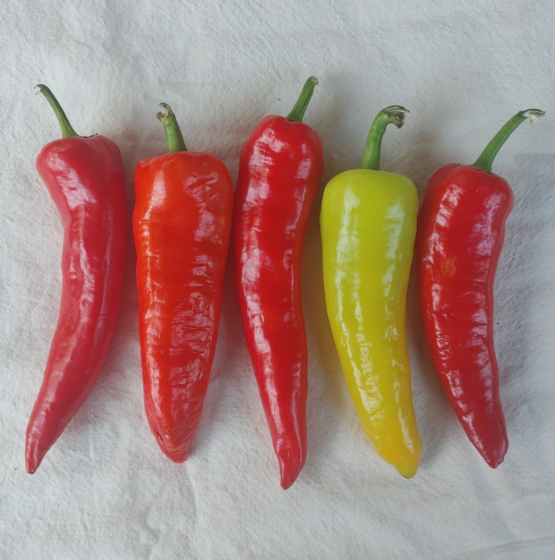 Wow were we impressed with this pepper when we trialed it in 2010. Sweet, Italian type peppers ripen to red, orange and yellow and are borne on 60-70 cm productive plants. All the peppers are long and narrow but there is some variation in shoulder width, tip bluntness, wall thickness and length. The colours are very saturated and make beautiful displays at market or on your plate. Developed by Wild Garden Seeds.