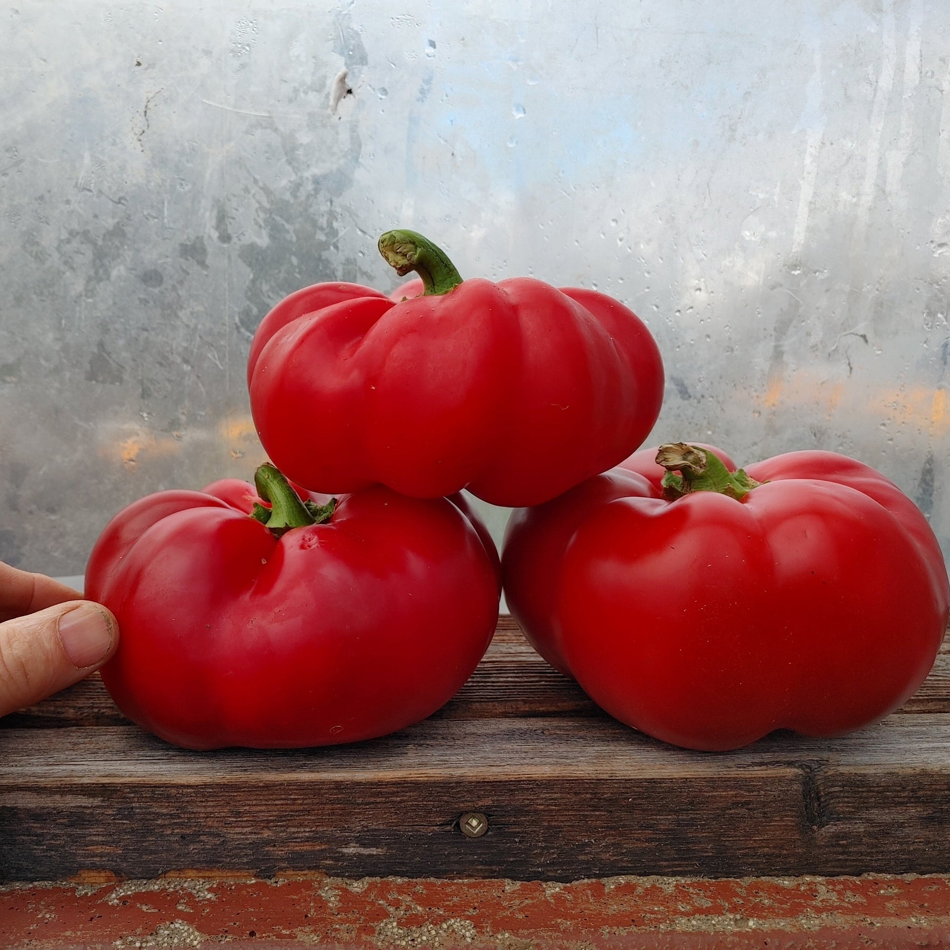 This wonderful heirloom sweet pepper hails from Carmagnola, the city of the Italian pepper. Extremely productive plants produce large, slightly flattened fruits that are sweet and delicious. The thick walls and thin skins make for fabulous roasted peppers perfect for canning. Great shape and size for stuffing too. Red when ripe but the green fruits are also delicious. Rare and a new farm favourite Listed on Slow Food's Ark of Taste.